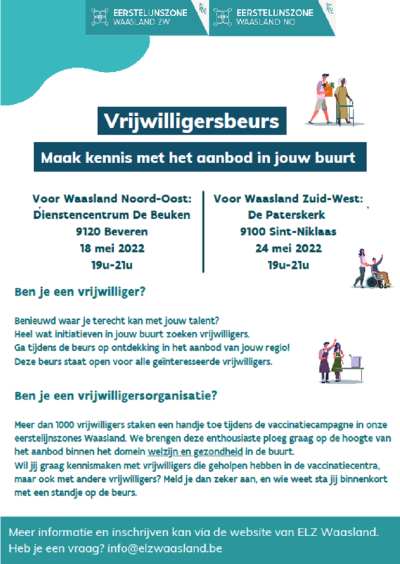 Op 24 mei 2022 van 19 tot 21 uur organiseert ELZ Waasland Zuid-West een vrijwilligersbeurs in de Paterskerk (Truweelstraat 210, Sint-Niklaas) waaraan VLOS zal deelnemen. VLOS verwelkomt je van harte.